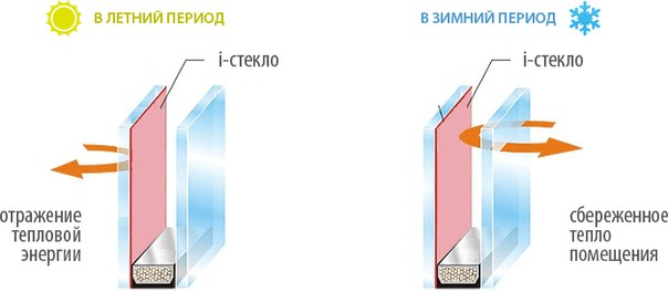 Основное отличие этих изделий – наличие специальных стекол. Их теплоизолирующие свойства увеличивают путем нанесения специального напыления. Например, широко распространены варианты с тончайшим напылением слоя оксида серебра. Такое покрытие полностью прозрачно для видимого света, но отражает инфракрасное (тепловое) излучение. В результате такое окно способно сохранить до 90% от общего теплового потока внутри здания.