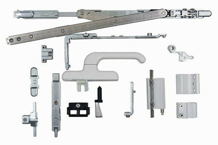 Набор элементов определяется способом открывания окон. Самый популярный из них — поворотно-откидной, соответствующая и фурнитура. Установить створку в определенное положение возможно, наклоняя ручку под тем или иным углом. Стандартная комплектация предполагает 2 режима — откидной и поворотный. Более сложные модели могут оснащаться опцией микропроветривания, пошаговым механизмом.