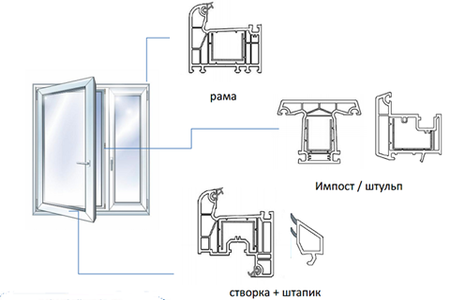 Из перечисленных элементов и создаются оконные блоки — плюс ряд дополнительных деталей для фиксации рам в проемах.