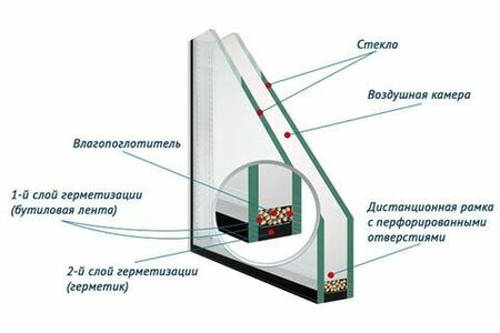 Это конструкция, состоящая из дистанционной рамки (материалом для нее служат алюминиевый профиль или твердый полимер) и 2-3 стекол. Чтобы предотвратить конденсацию влаги в камерах, внутрь рамки помещают абсорбент.